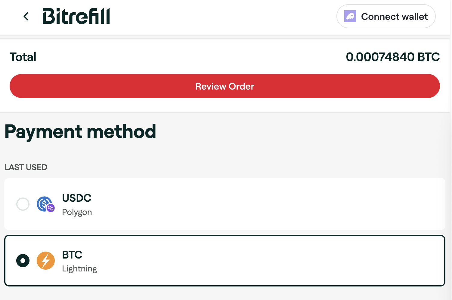 We compared the cost of purchasing the same gift card on Bitrefill using two methods: